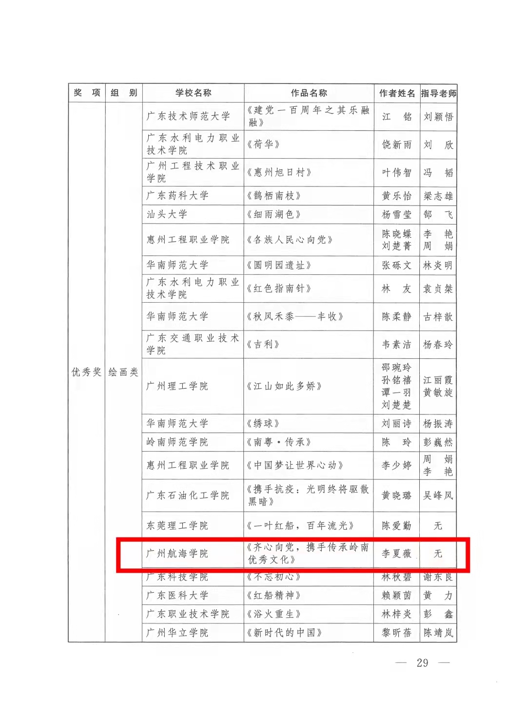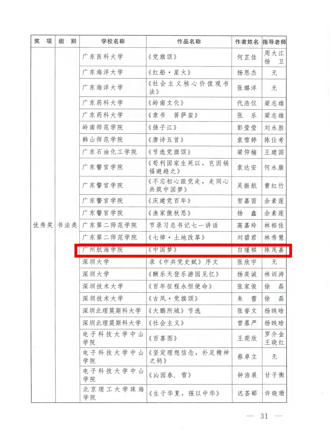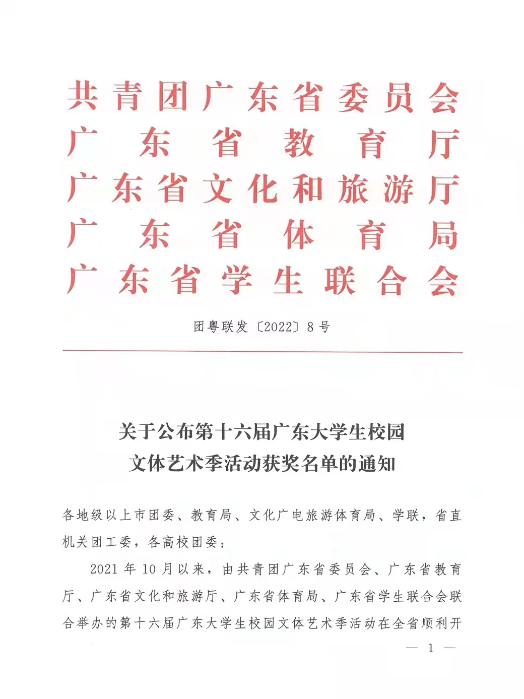 (校团委供稿)2021年10月以来,明胜m88官网学生积极参与主题为“南粤学子感党恩,青春奋进新征程”的第十六届广东大学生校园文体艺术季活动。经过初赛和决赛角逐,明胜m88官网学生在本届活动中取得佳绩,现将获奖名单公布如下: