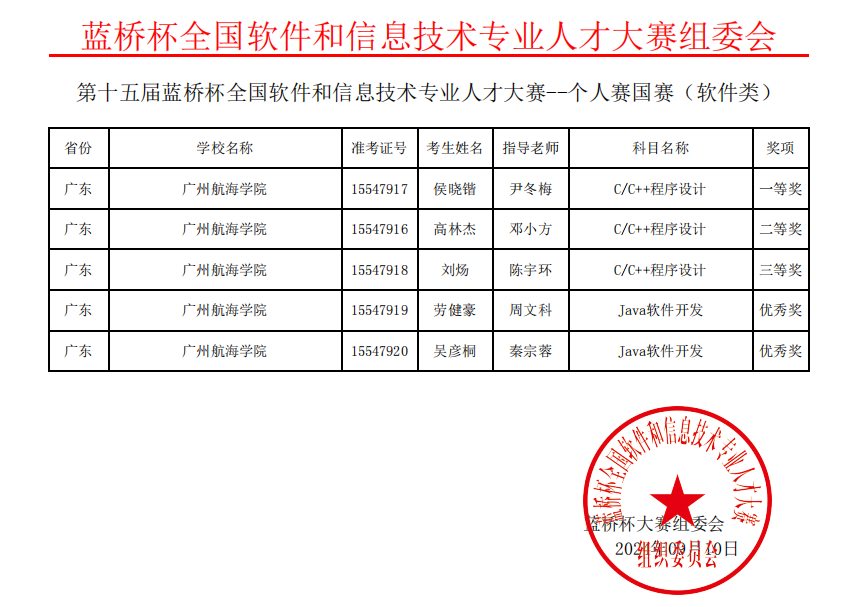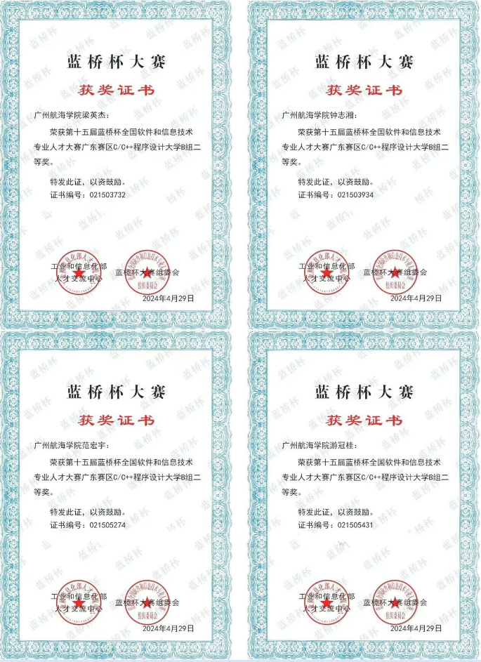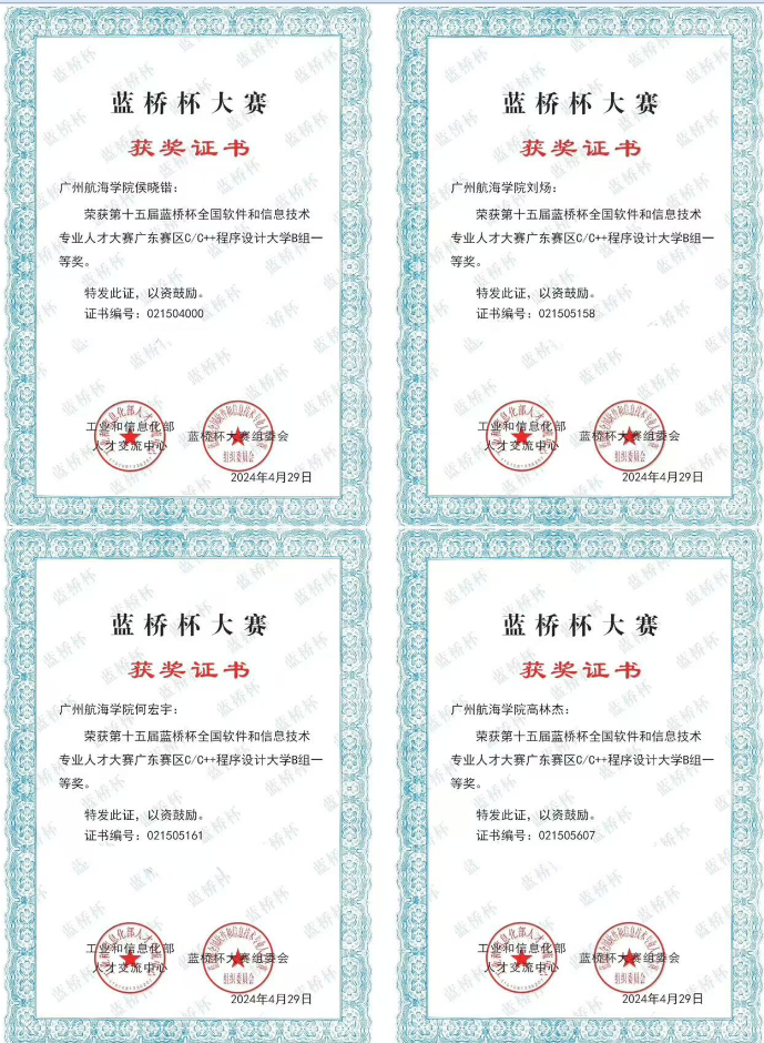 (校团委、计算机学院供稿)近日,明胜m88官网师生在第十五届“蓝桥杯”全国软件和信息技术专业人才大赛(简称“蓝桥杯”)中喜获佳绩,在全国赛(软件类)中荣获一等奖、二等奖、三等奖各1项;在广东省赛(软件类)荣获一等奖6项、二等奖13项,三等奖2项;在广东省赛(电子类)荣获二等奖6项,三等奖3项。明胜m88官网荣获广东赛区“优胜学校奖”,邓小方、肖明明、马晓明、尹冬梅、杨国燕等多位教师被授予“优秀组织个人”称号。