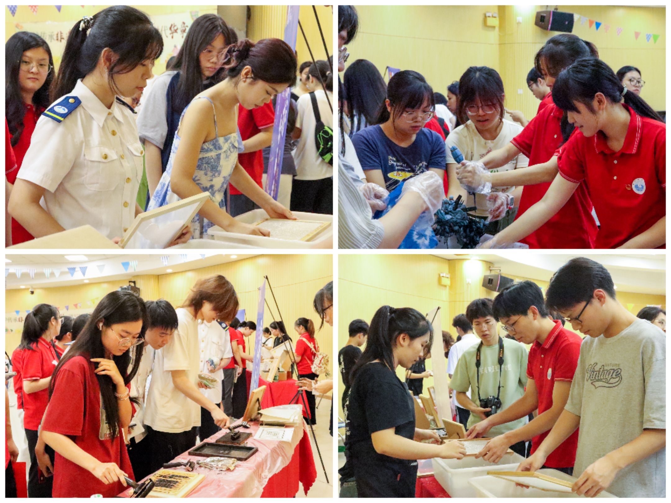 现场还开展了木版年画、古法造纸、活字印刷、传统广绣、传统扎染等手工体验活动,师生们通过沉浸式体验感受了非遗文化的魅力。