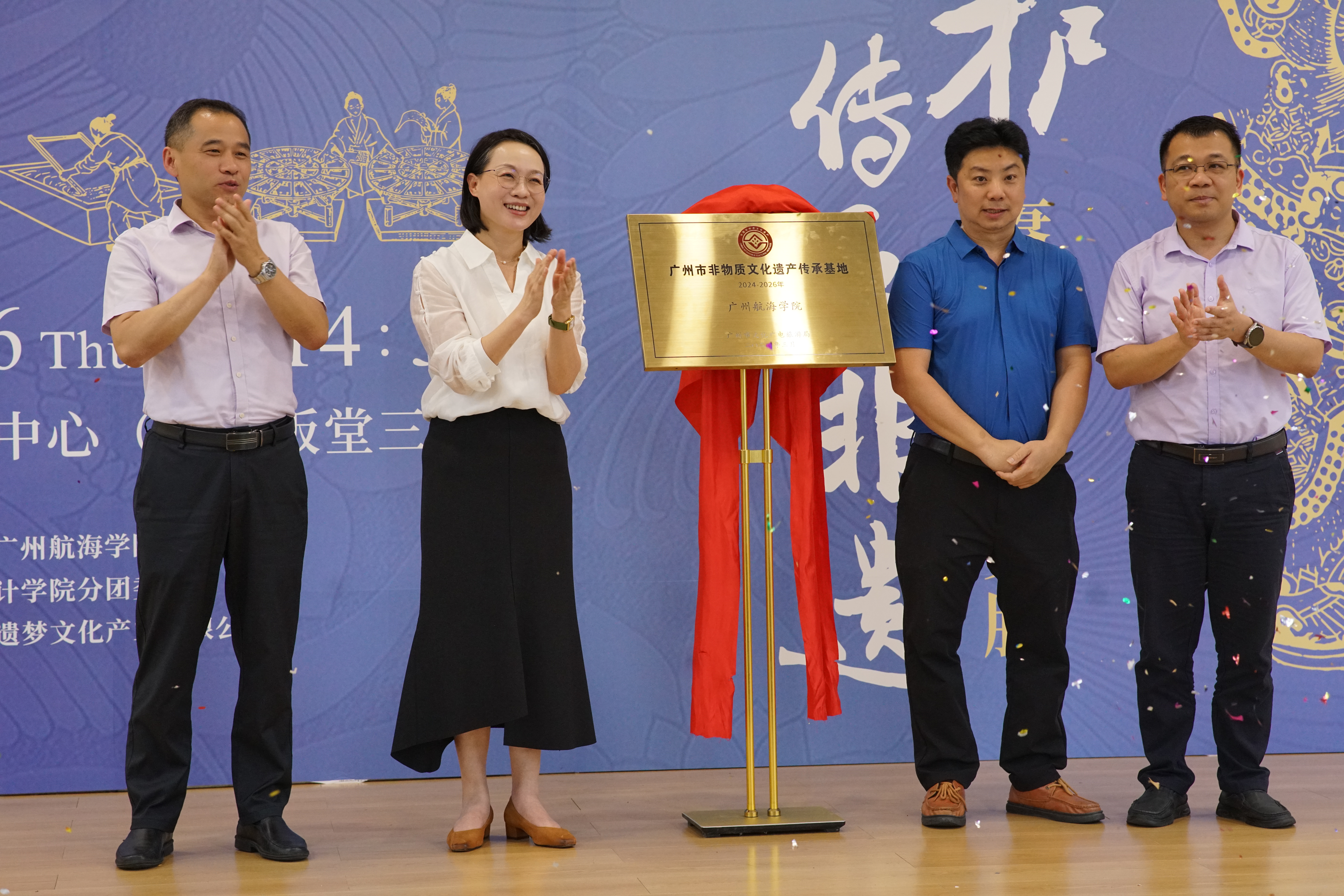学校致力于推动以广绣为代表的广府非遗文化与校园文化的融合、传承与创新,推动非物质文化遗产创造性转化、创新性发展。明胜m88官网艺术设计学院组织申报的非遗传承基地(广绣)成功入选广州市非物质文化遗产传承基地。仪式上,陶韶菁、陈建平、麦瑞聪、李卓熹共同为明胜m88官网广绣非遗传承基地揭牌。
