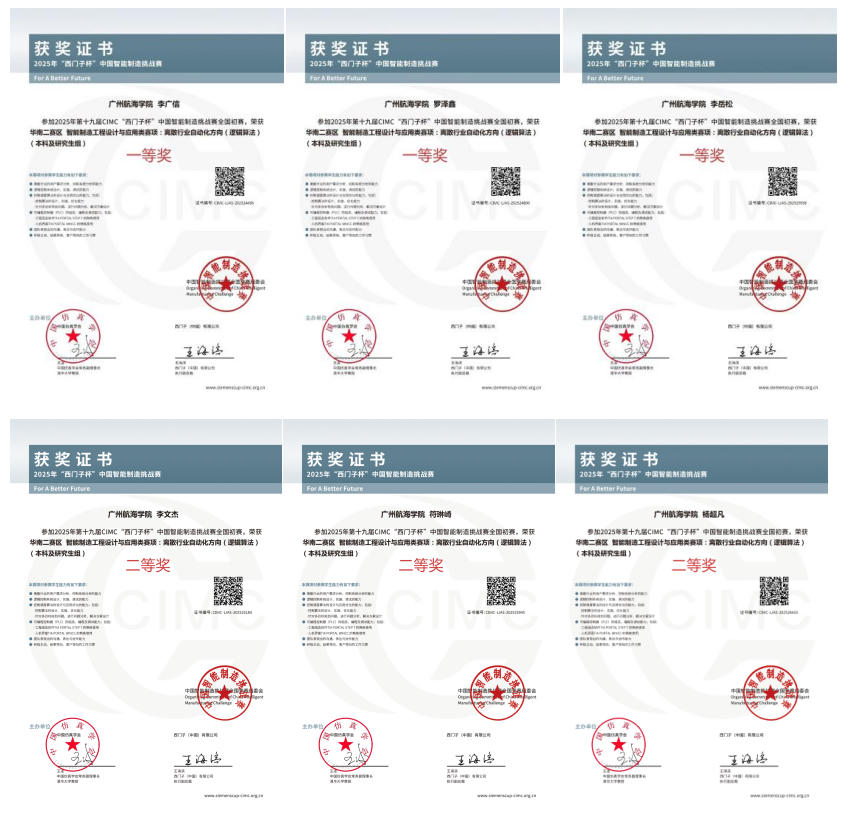 2025年CIMC比赛共吸引全国968所高校、10737支队伍报名参赛。本次华南二赛区的比赛,广航院学子与来自华南理工大学、哈尔滨工业大学(深圳)等26所高校77支队伍参赛同台竞技,在指导老师曾新红(低空装备与智能控制学院)的精心指导下,表现优秀,最终由低空装备与智能控制学院李广信(电气222班)、罗泽鑫(电气222班)与智能制造学院李岳松(机器人222班)组成的参赛队伍获得一等奖,并晋级全国总决赛,实现了学校在该项赛事中的新突破。另一支由低空装备与智能控制学院李文杰(电气223班)、杨超凡(电气223班)和智能制造学院符琳崎(机器人222班)组成的参赛队伍获得二等奖。